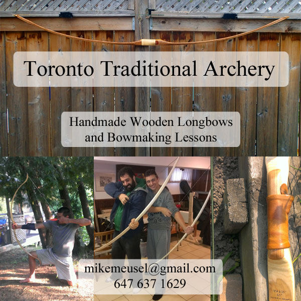 Contact mikemeusel@gmail.com or phone 647-637-1629 to order a custom made bow or if you wish to learn more about bowmaking.
